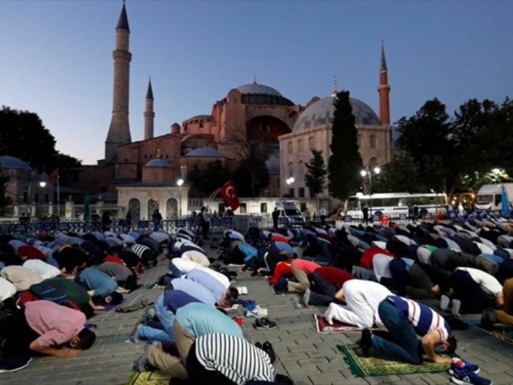 Όπως ανακοίνωσε χθες ο Τούρκος πρόεδρος η πρώτη μουσουλμανική προσευχή στην Αγία Σοφία, θα πραγματοποιηθεί σε δυο εβδομάδες από σήμερα, την Παρασκευή 24 Ιουλίου. Η Τουρκία ασκεί τα κυριαρχικά της δικαιώματα με τη μετατροπή της Αγίας Σοφίας σε τζαμί, είπε, σημειώνοντας πως το «τζαμί της Αγίας Σοφίας» θα είναι ανοιχτό σε όλους τους μουσουλμάνους, τους χριστιανούς, σε όλους τους ξένους.