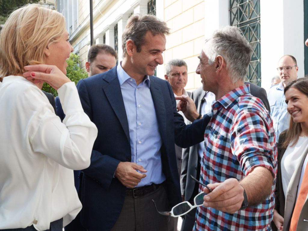 Ο πρόεδρος της Ν.Δ. συνομίλησε με πολίτες και νέους δικηγόρους, ενώ επισκέφθηκε τις εγκαταστάσεις των δικαστηρίων.