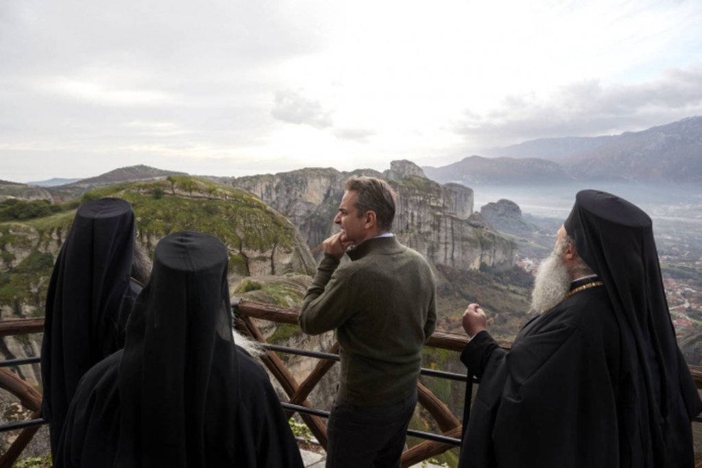 Τον θαυμασμό του στους πρώτους μοναχούς οι οποίοι εγκαθίδρυσαν τον μοναχισμό «σε αυτούς τους αφιλόξενους βράχους», «στην κυριολεξία μεταξύ ουρανού και γης» εξέφρασε ο πρωθυπουργός ο Κυριάκος Μητσοτάκης, ο οποίος σήμερα το πρωί επισκέφθηκε δύο ιστορικές Μονές των Μετεώρων, τη Μονή της Μεταμόρφωσης του Σωτήρος, γνωστή και ως «Μεγάλο Μετέωρο», και τη Μονή Αγίου Στεφάνου.