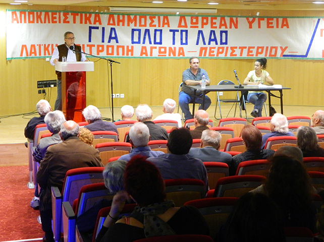 Συζήτηση για τα σοβαρά θέματα της Υγείας διοργάνωσε την Τετάρτη 16 Οκτωβρίου 2013 η Λαϊκή Επιτροπή Αγώνα Περιστερίου στο Δημαρχείο Περιστερίου.