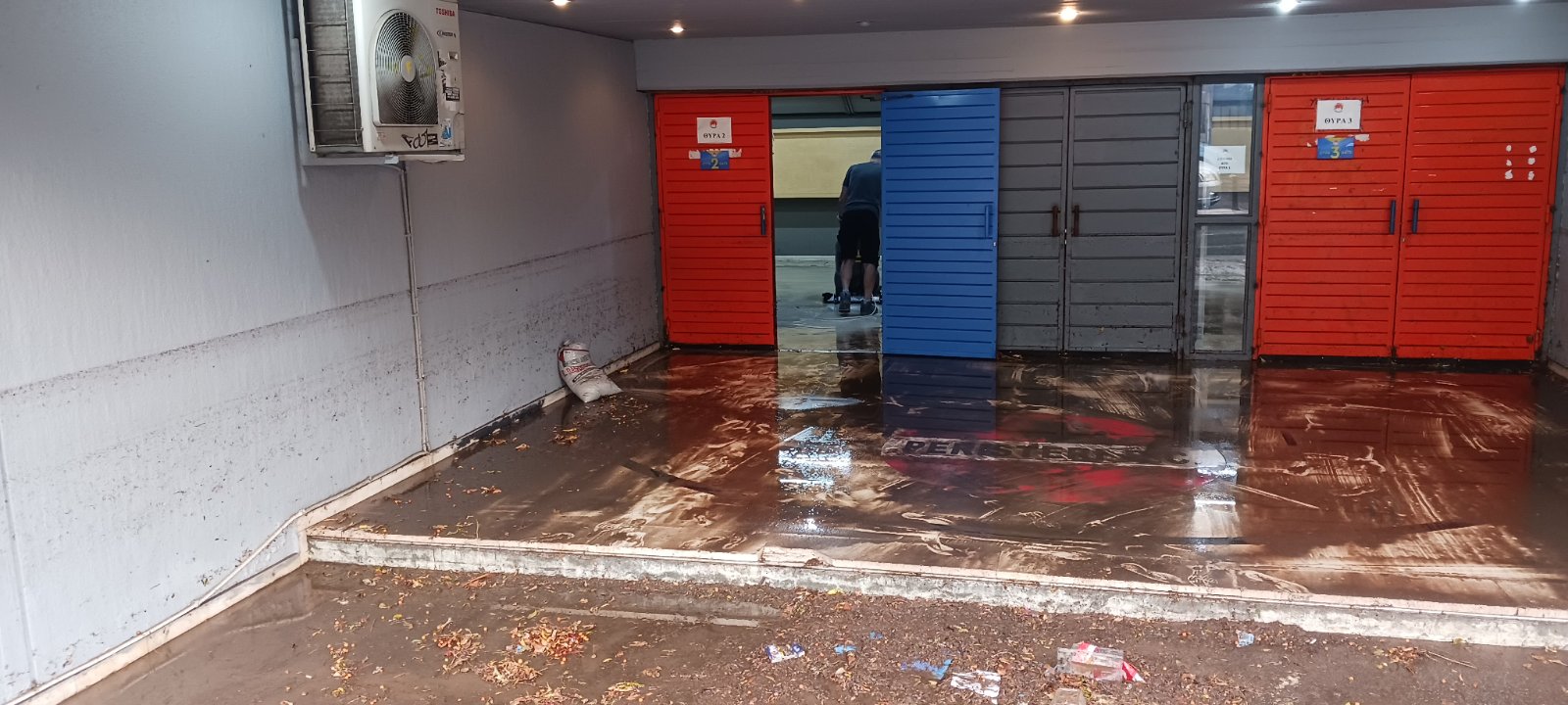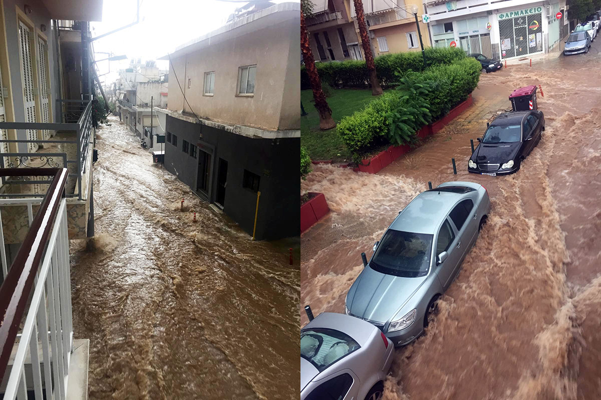 Σχολεία, καταστήματα, σπίτια, πλημμύρισαν. Κάδοι επιπλέουν στους δρόμους. Καπάκια φρεατίων που έφυγαν στη μέση κεντρικών οδών.