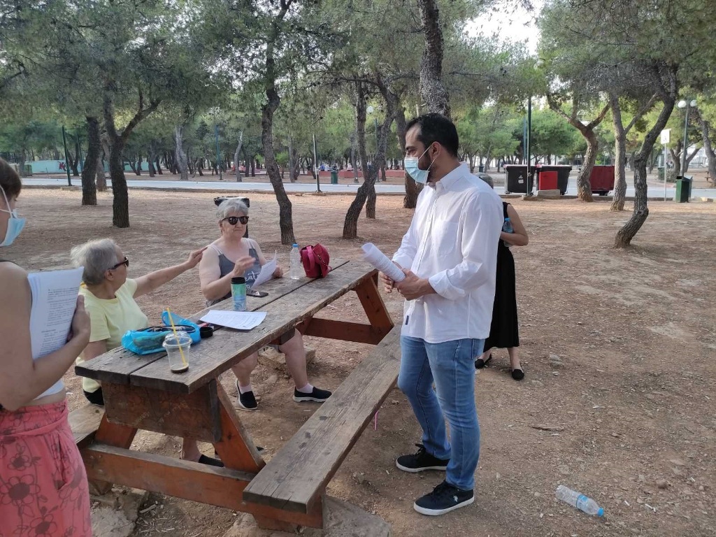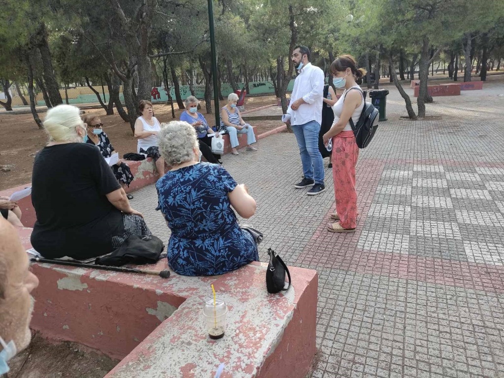 Ανακοίνωση για την πυροπροστασία και τα αντιπυρικά έργα, μοιράστηκε σε περιοδεία του επικεφαλής της Λαϊκής Συσπείρωσης και δημοτικό σύμβουλο Περιστερίου Γιώργου Σιδέρη στο Πάρκο της Νέας Ζωής.