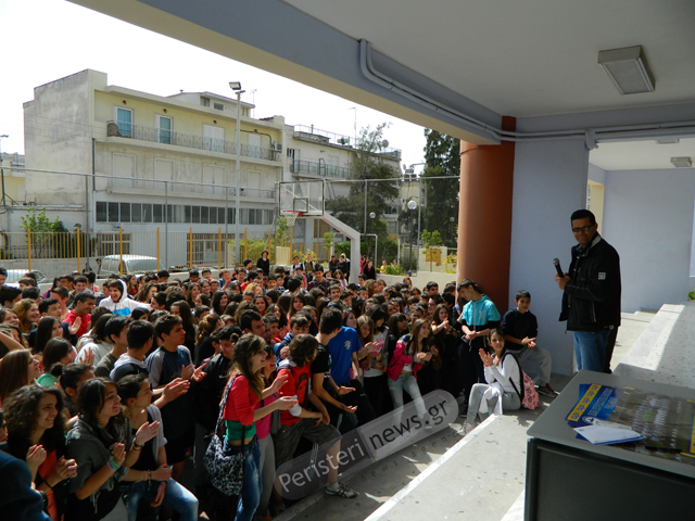 Με την αύρα της πρόκρισης στον τελικό του Κυπέλλου Ελλάδας που έχει σκορπίσει ντελίριο ενθουσιασμού σε ολόκληρο το Περιστέρι, υποδέχθηκαν σήμερα την αντιπροσωπεία του Ατρόμητου οι καθηγητές και ιδίως οι μαθητές του 13ου Γυμνασίου Περιστερίου.