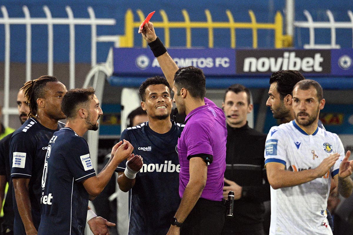 Στο 56ο λεπτό οι γηπεδούχοι έμειναν με δέκα παίκτες. Μετά από onfield review, ο Φωτιάς άλλαξε την απόφασή του για κίτρινη κάρτα και έδωσε κόκκινη στον Κούντε για επικίνδυνο μαρκάρισμά του στον Μάντζη. Τρία λεπτά αργότερα είχε και ευκαιρία με άστοχη κεφαλιά του.