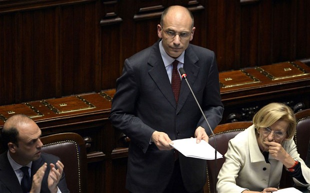 Ο Ενρίκο Λέτα αποσαφήνισε στην ίδια συνέντευξη ότι, μετά την ψηφοφορία της γερουσίας και την τελική επιλογή του Μπερλουσκόνι, να προσφέρει ψήφο εμπιστοσύνης, αναφώνησε : «μεγάλε!» κοιτάζοντας τον ηγέτη της «Φόρτσα Ιτάλια», διότι «δεν περίμενε, ποτέ, τόσο ξαφνική αλλαγή στάσης του, κατά συνέπεια όλης της παράταξης της κεντροδεξιάς.