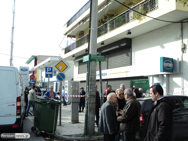 Θρασύτατη ληστεία σημειώθηκε στις 9.46 σε κατάστημα της Εθνικής Τράπεζας επί της Λεωφόρου Θηβών 61, κοντά στη διασταύρωση με την Τζων Κέννεντυ.