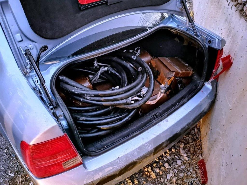 Εντός του οχήματος βρέθηκαν όσα είχαν κλέψει καθώς και κόφτης μετάλλων, λοστός και κοντάρι.