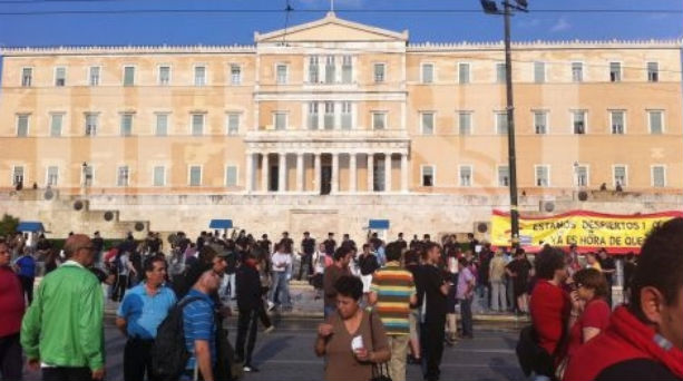 Μία από τις μεγαλύτερες διαδηλώσεις των τελευταίων ετών πραγματοποιείται στο κέντρο της Αθήνας, στην πλατεία Συντάγματος, από την οποία ωστόσο δεν έλειψαν τα επεισόδια, η ρίψη χημικών και οι τραυματισμοί.