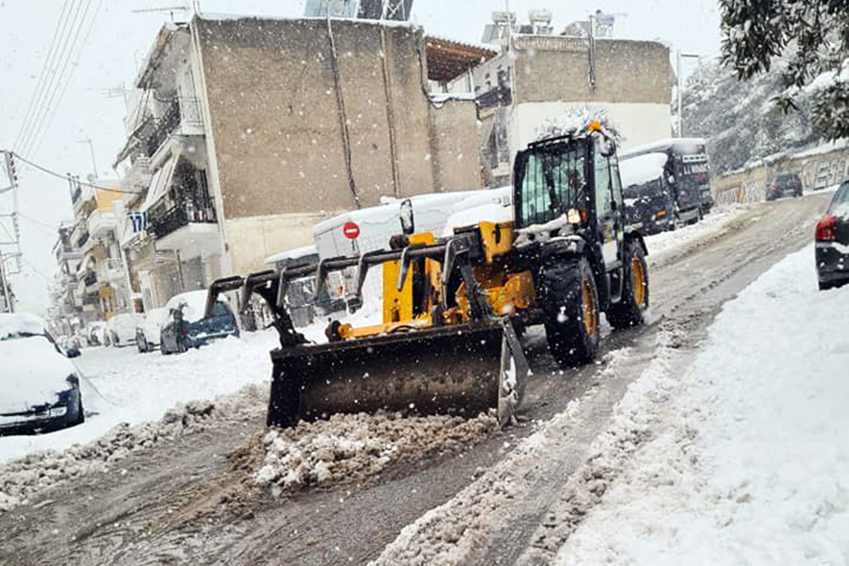 Την ίδια ώρα η μάχη με τα χιόνια συνεχίζεται στους δρόμους της πόλης με τη Χρυσούπολη και την Κηπούπολη να έχουν πληγεί περισσότερο.
