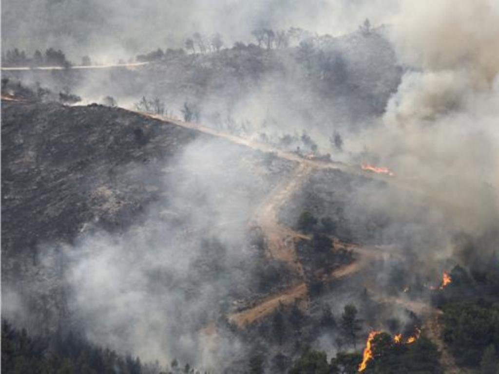 Οι επίγειες δυνάμεις, που έχουν ενισχυθεί, αποτελούνται απο 136 πυροσβέστες με 74 οχήματα, 179 άτομα πεζοπόρα τμήματα, 100 στρατιώτες, 23 οχήματα των δήμων, 10 ιδιωτικά βυροφόρα και 17 σκαπτικά μηχανήματα, που ανοίγουν δρόμους στα δύσβατα σημεία και κατασκευάζουν αντιπυρικές ζώνες.