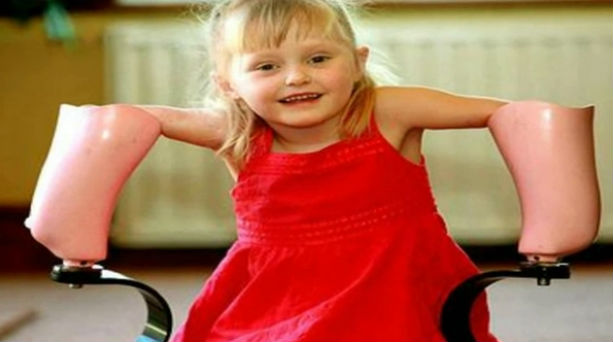 Η επτάχρονη είναι ο μικρότερος άνθρωπος στον κόσμο που χρησιμοποιεί τεχνητά μέλη. Οι γιατροί προσπάθησαν να της προσθέσουν κανονικά μέλη, όμως της δημιουργούσαν πληγές.