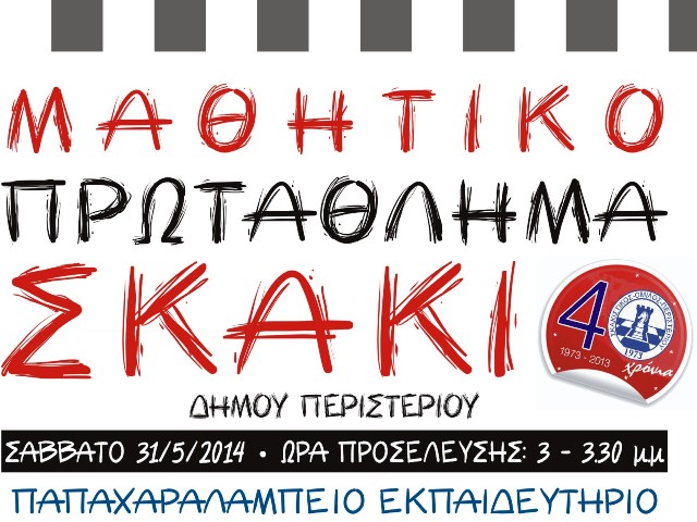 Ο Σκακιστικός Όμιλος Περιστερίου, και το Παπαχαραλάμπειο Εκπαιδευτήριο, διοργανώνουν το Ατομικό Μαθητικό – Σχολικό Πρωτάθλημα Σκάκι Περιστερίου.