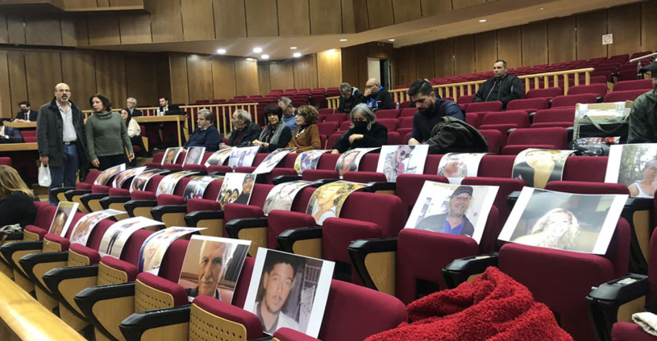 Φωτογραφίες των θυμάτων της φονικής πυρκαγιάς στο Μάτι τον Ιούλιο του 2018 τοποθέτησαν οι συγγενείς τους στο ακροατήριο, γεγονός που προκάλεσε την αντίδραση της προέδρου.