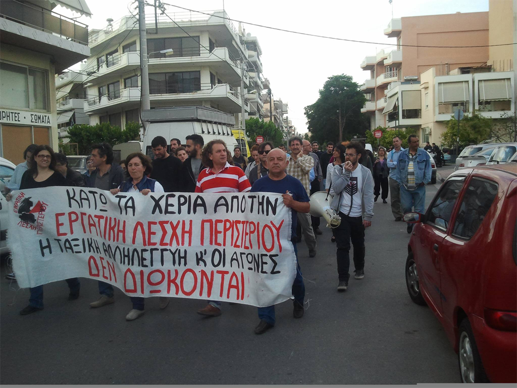 Εργαζόμενοι και άνεργοι, νέοι και νέες του Περιστερίου φώναξαν ενάντια στη δίωξη της συνδικαλιστικής δράσης, ενάντια στην ποινικοποίηση της ταξικής αλληλεγγύης. Δήλωσαν πως η μεθοδευμένη προσπάθεια τρομοκράτησης και φίμωσης της Εργατικής Λέσχης Περιστερίου ΔΕ ΘΑ ΠΕΡΑΣΕΙ! Αυτοί που θέλουν ένα λαό υποταγμένο στη μνημονιακή λαίλαπα θα μας βρίσκουν απέναντί τους.