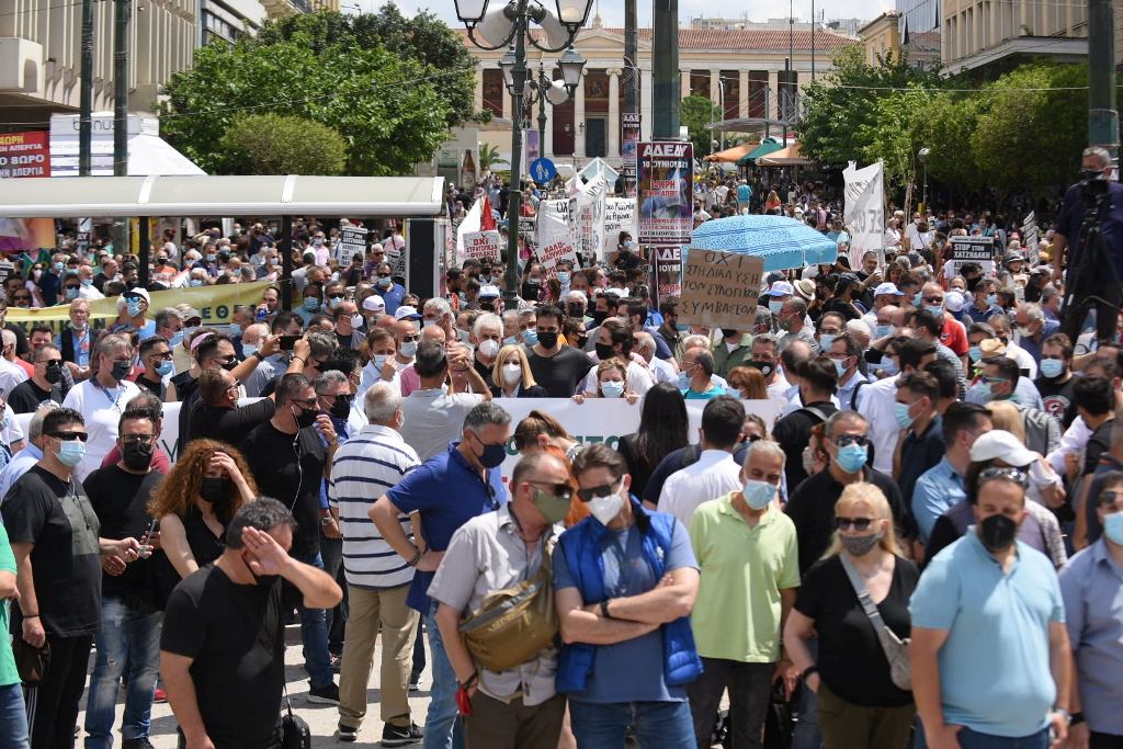 Οι διαδηλωτές διατράνωσαν την αντίθεσή τους στο εργασιακό νομοσχέδιο, κάνοντας λόγο για «αντεργατικό έκτρωμα» και απαίτησαν να μην προχωρήσει η ψήφισή του στη Βουλή.