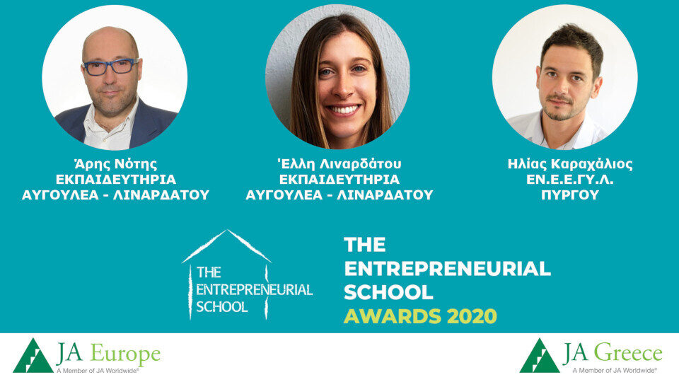 Τα επιτεύγματα των εκπαιδευτικών αυτών στη μαθητική καινοτομία και επιχειρηματικότητα οδήγησαν το JA Europe να ανακηρύξει τα σχολεία τους Ευρωπαϊκά Επιχειρηματικά Σχολεία και πλέον τα Εκπαιδευτήρια Αυγουλέα-Λιναρδάτου και το Ενιαίο Ειδικό Επαγγελματικό Γυμνάσιο-Λύκειο Πύργου είναι κάτοχοι του Ευρωπαϊκού Τίτλου «The Entrepreneurial School 2020» – «Το Επιχειρηματικό Σχολείο 2020» του JA Europe και συγκαταλέγονται στα 39 καλύτερα σχολεία επιχειρηματικότητας της Ευρώπης για το 2020.