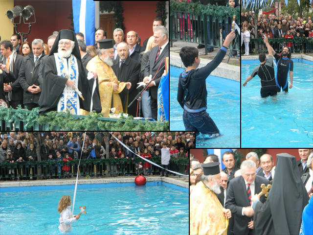 Ιδιαίτερη αίσθηση προκάλεσε στο συγκεντρωμένο πλήθος δύο τολμηρά μικρά παιδιά που βούτηξαν για τον σταυρό στα παγωμένα νερά. Η ενέργεια αυτή ενθουσίασε το κοινό που χειροκρότησε τα παιδάκια.