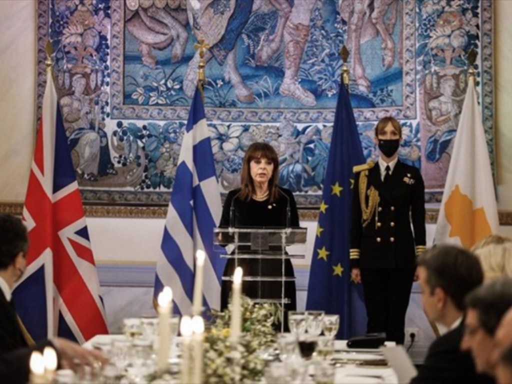 Κατά την προσφώνησή της, η κα Σακελλαροπούλου, αφού καλωσόρισε τους υψηλούς προσκεκλημένους και τους ευχαρίστησε για την παρουσία τους στη χώρα μας, τόνισε ότι οι λαοί μας διατηρούν μακρά φιλία και δεσμούς ισχυρούς από τη γέννηση του σύγχρονου ελληνικού Κράτους.