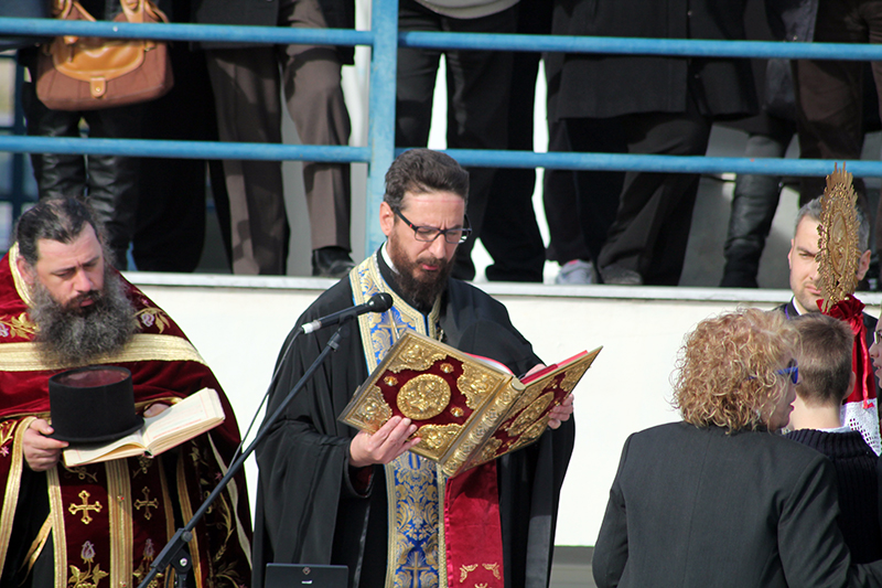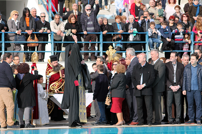 Κάτω από εξαιρετικές συνθήκες το ηλιόλουστο πρωινό της Τετάρτης 6 Ιανουαρίου 2016 και παρουσία του Δημάρχου Περιστερίου Ανδρέα Παχατουρίδη, ψάλθηκε από τον αρχιμανδρίτη Μάξιμο το «Εν Ιορδάνη βαπτιζομένου σου Κύριε…» και έπειτα πραγματοποιήθηκε η ρίψη του Σταυρού στο κολυμβητήριο όπου δεκάδες μικρά παιδιά, που εκπροσώπησαν τις κολυμβητικές ομάδες της πόλης μας, έπεσαν με ιδιαίτερη χαρά να τον πιάσουν.
