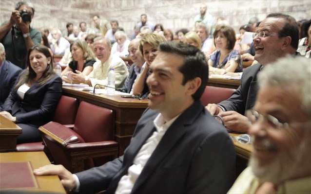 Με θερμό χειροκρότημα έγινε δεκτός ο πρωθυπουργός Αλέξης Τσίπρας κατά την είσοδό του στην αίθουσα της Γερουσίας στη Βουλή όπου συνεδριάζει η κοινοβουλευτική ομάδα του ΣΥΡΙΖΑ, λίγες ώρες πριν από την κρίσιμη ψηφοφορία για το νομοσχέδιο με τα προαπαιτούμενα.