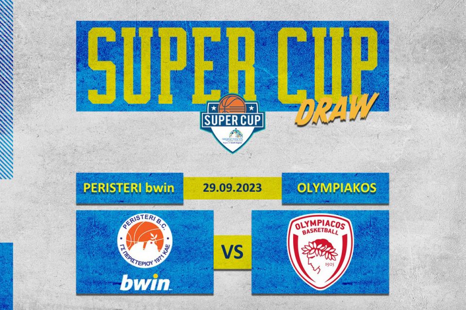 Ο Ολυμπιακός θα είναι ο αντίπαλος του Περιστερίου στον ημιτελικό του Super Cup 2023 by aegean islands, που θα διεξαχθεί στην Ρόδο και στο κλειστό γυμναστήριο Καλλιθέας, μετά την κλήρωση που πραγματοποιήθηκε την Πέμπτη (31/8) στα γραφεία του ΕΣΑΚΕ.