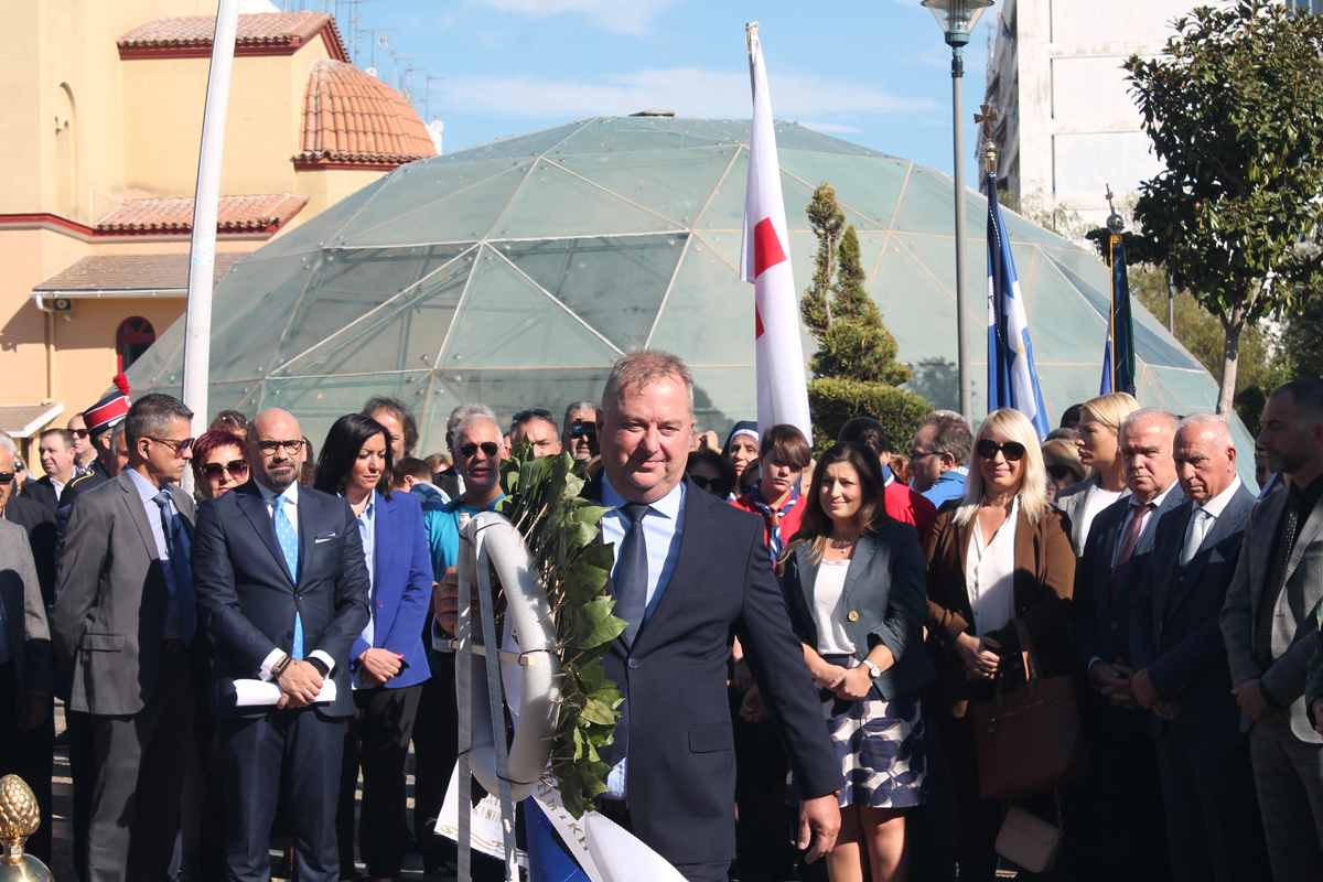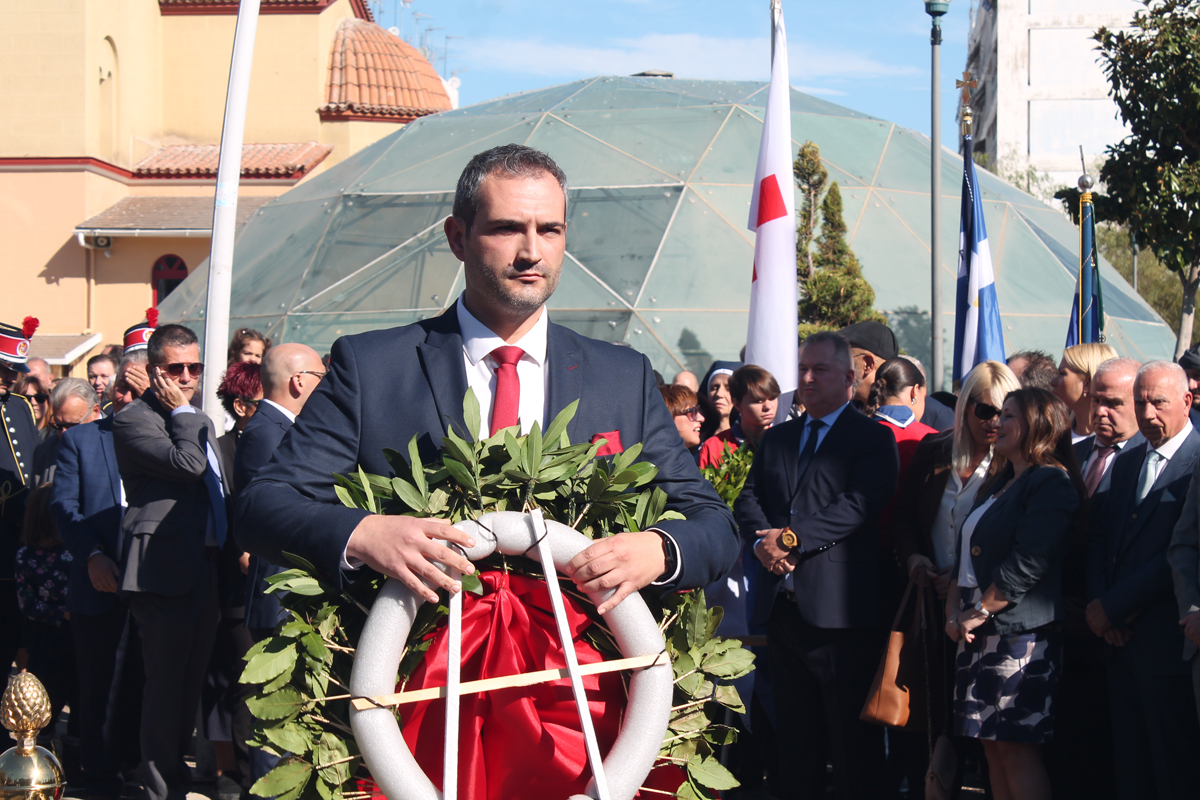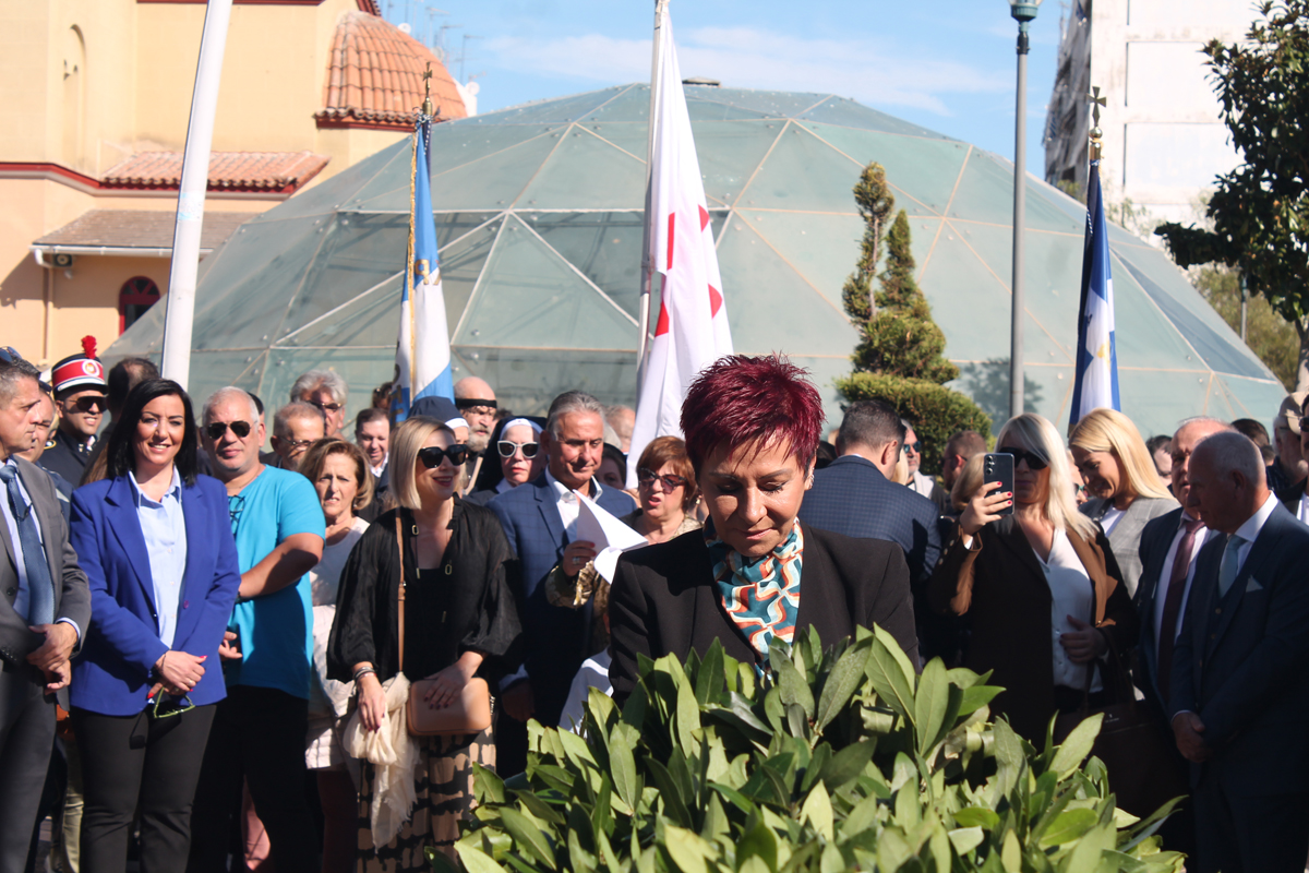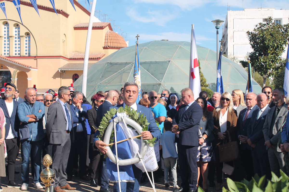 Η κατάθεση στεφάνων ξεκίνησε από τον Δήμαρχο και συνεχίστηκε από τις πολιτικές και δημοτικές παρατάξεις, τις ένοπλες δυνάμεις και τους τοπικούς συλλόγους.