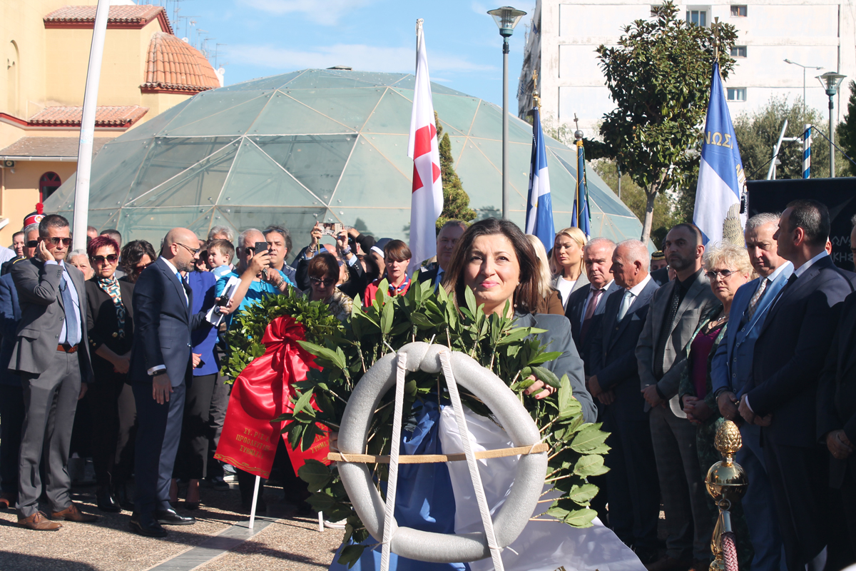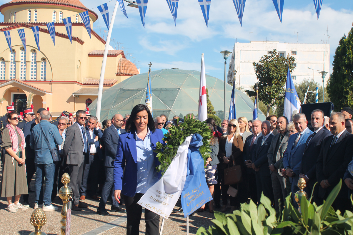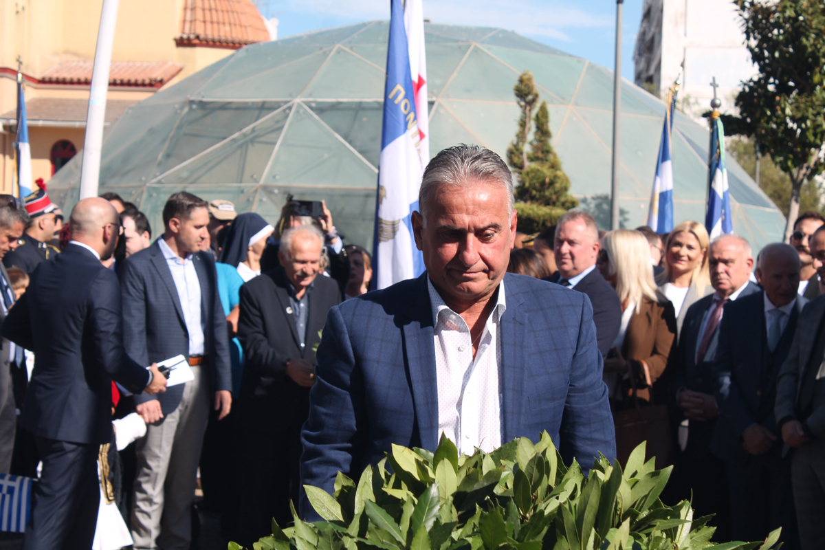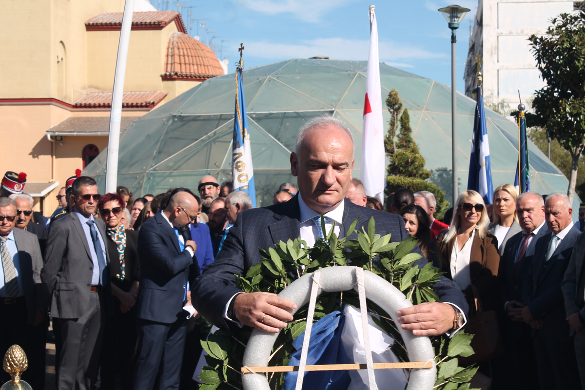 Η κατάθεση στεφάνων ξεκίνησε από τον Δήμαρχο και συνεχίστηκε από τις πολιτικές και δημοτικές παρατάξεις, τις ένοπλες δυνάμεις και τους τοπικούς συλλόγους.
