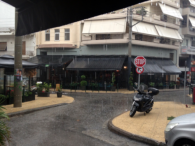 Σήμερα ο καιρός φάνηκε και πάλι εχθρικός με συνεχόμενη βροχή και δυνατές μπόρες ανά τακτά χρονικά διαστήματα. Το αποκορύφωμα πάντως ήταν το χαλάζι που έπεσε περίπου στις 12:45 σε όλο το Περιστέρι.