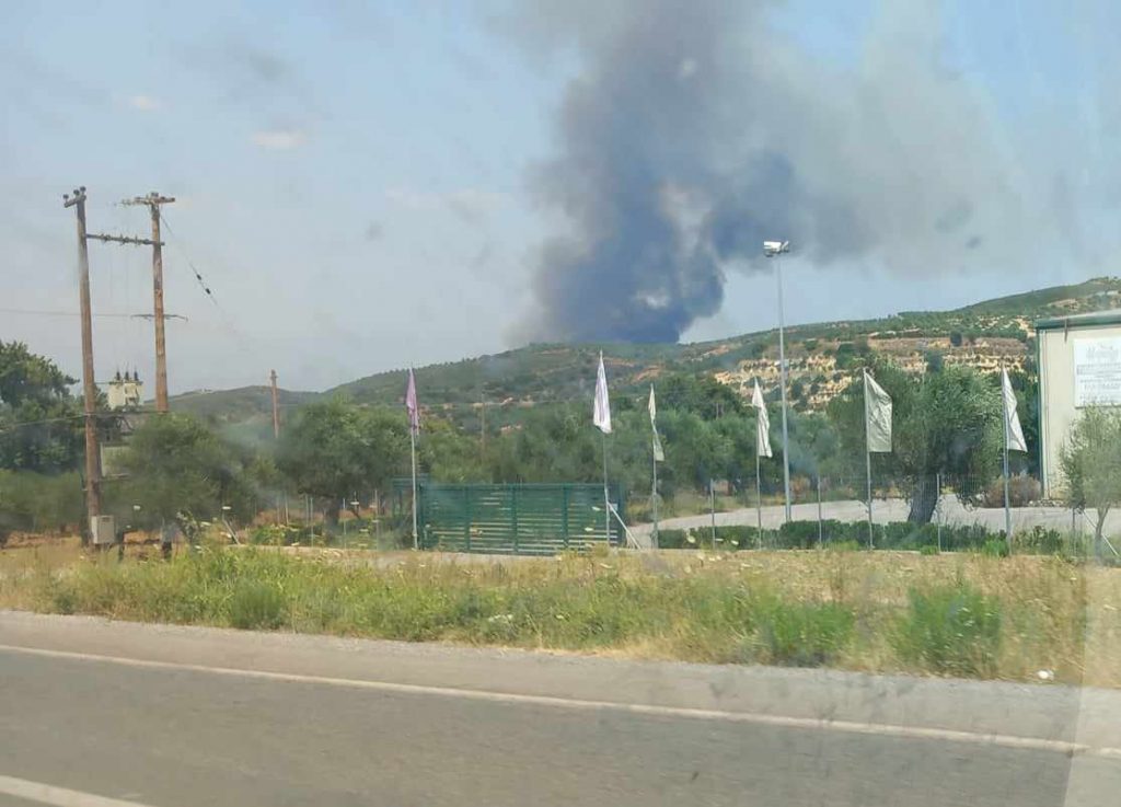 Η περιοχή έχει καλυφθεί από μαύρους καπνούς, την ώρα που το πύρινο μέτωπο ξεπερνάει τα 2 χιλιόμετρα.