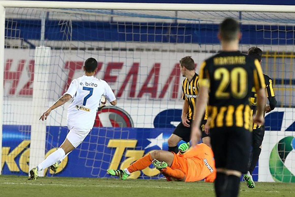 Στο 53΄ και σε μακρινή μπαλιά ο Λε Ταλέκ κινήθηκε στην πλάτη της άμυνας, πέρασε τον Ανέστη αλλά έφυγε πλάγια αριστερά και μη μπορώντας να εκτελέσει ο ίδιος «έκοψε» στον επερχόμενο Μπρίτο, ο οποίος πλάσαρε ανοίγοντας το σκορ!
