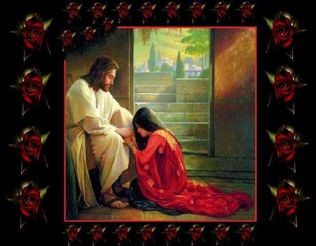 Με μια συγκλονιστική χειρονομία αγάπης, σιωπηλή, αλείφει με μύρο τα πόδια του Κυρίου, και τα σκουπίζει με τα δάκρυα και τα μαλλιά της, δείχνοντας μ’ αυτό τον τρόπο την έμπρακτη μετάνοιά της, την οποία ο Κύριος κάνει αποδεκτή!