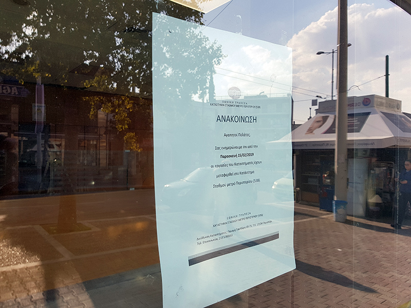 Πλέον οι πελάτες του εν λόγω καταστήματος θα εξυπηρετούνται από το 538 που βρίσκεται επί της Παναγή Τσαλδάρη 69-71, με τίτλο «Σταθμός Μετρό Περιστέρι».