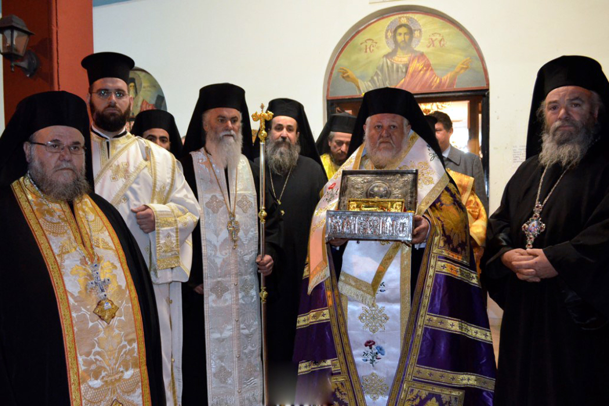 Το ιερό λείψανο μετέφερε ο Ηγούμενος της Μονής, Αρχιμανδρίτης π. Ιερώνυμος και το υποδέχθηκε ο Μητροπολίτης Μοζαμβίκης Χρυσόστομος, o οποίος εκπροσώπησε τον Μητροπολίτη Περιστερίου Χρυσόστομο, απουσιάζοντα στο εξωτερικό για την Σύναξη των Προκαθημένων.