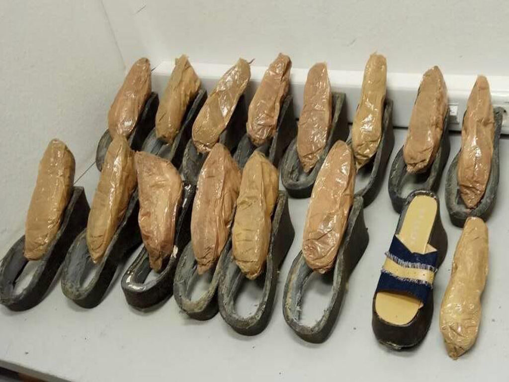 Συγκεκριμένα, η 34χρονη, η οποία αφίχθη στην Ελλάδα, από τη Νότια Αφρική, μέσω Άμπου Ντάμπι, μετέφερε ποσότητα ηρωίνης, βάρους 6 κιλών και 92 γραμμαρίων, μέσα σε δεκαπέντε 15 αυτοσχέδιες συσκευασίες, οι οποίες βρίσκονταν επιμελώς κρυμμένες σε πάτους γυναικείων υποδημάτων.