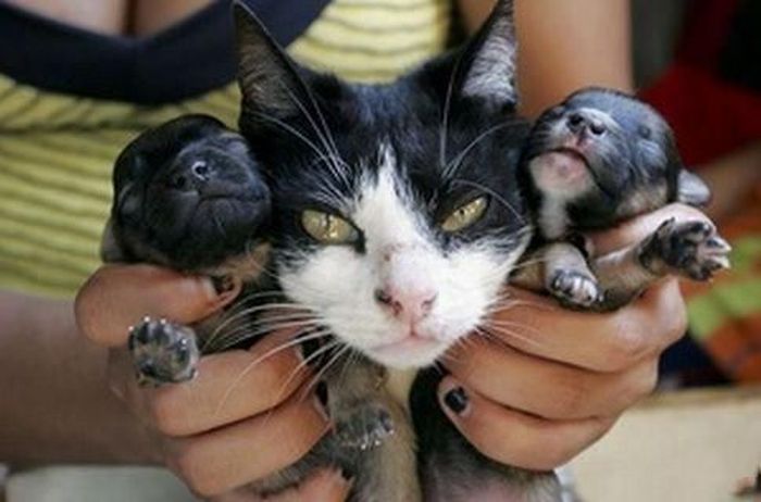 Μια γάτα στην Yangshan, ανατολική επαρχία της Κίνας, έγινε διάσημη μετά την γέννηση ενός κουταβιού.