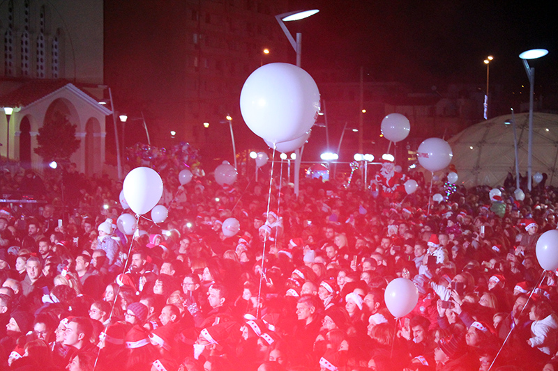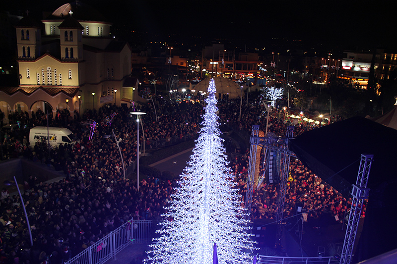 Η εκδήλωση κορυφώθηκε όταν ο Δήμαρχος Ανδρέας Παχατουρίδης έδωσε το έναυσμα του ανάμματος του Χριστουγεννιάτικου δέντρου της πόλης με δεκάδες πυροτεχνήματα να φωτίζουν τον ουρανό και εκατοντάδες μπαλόνια να τον κατακλύζουν.