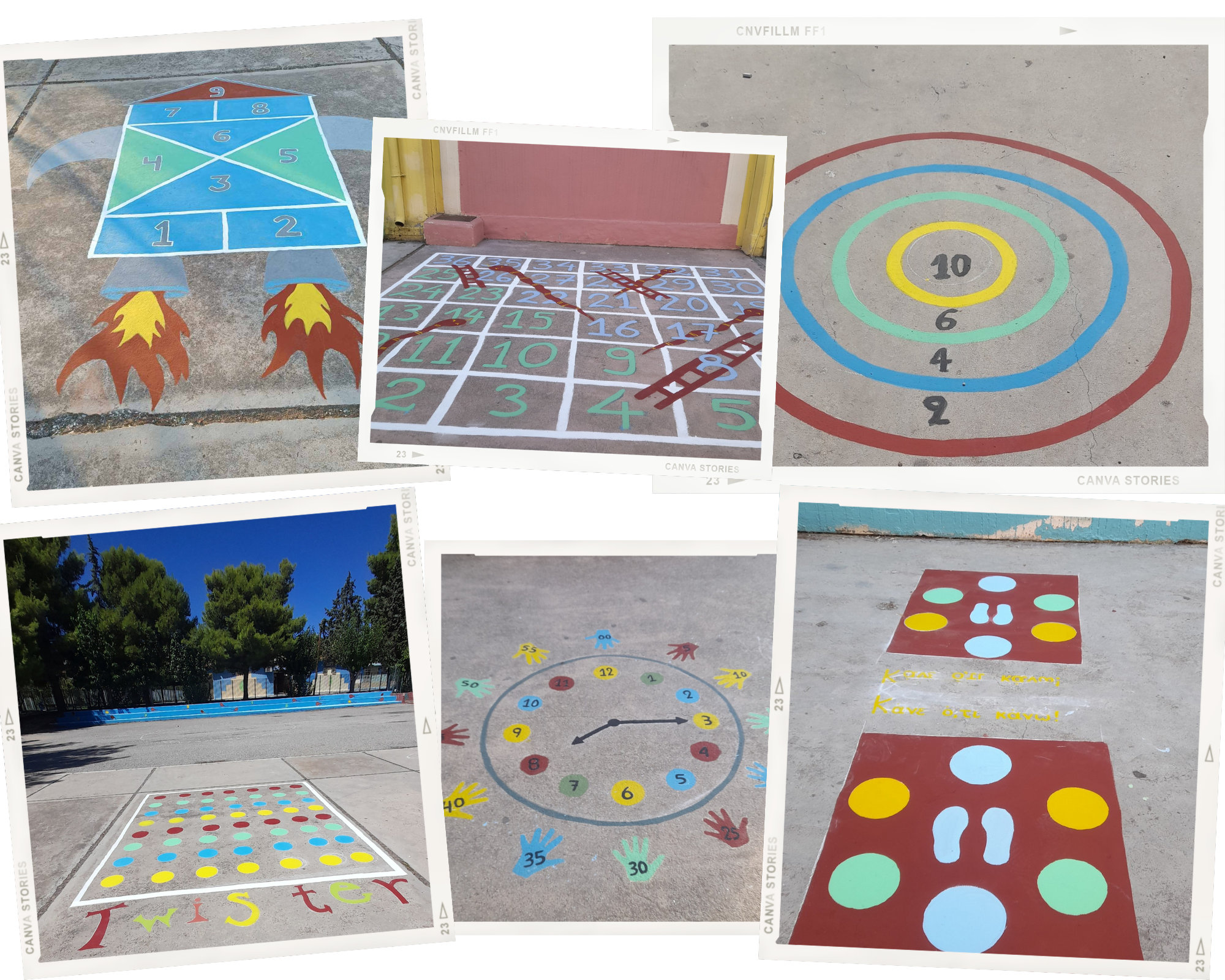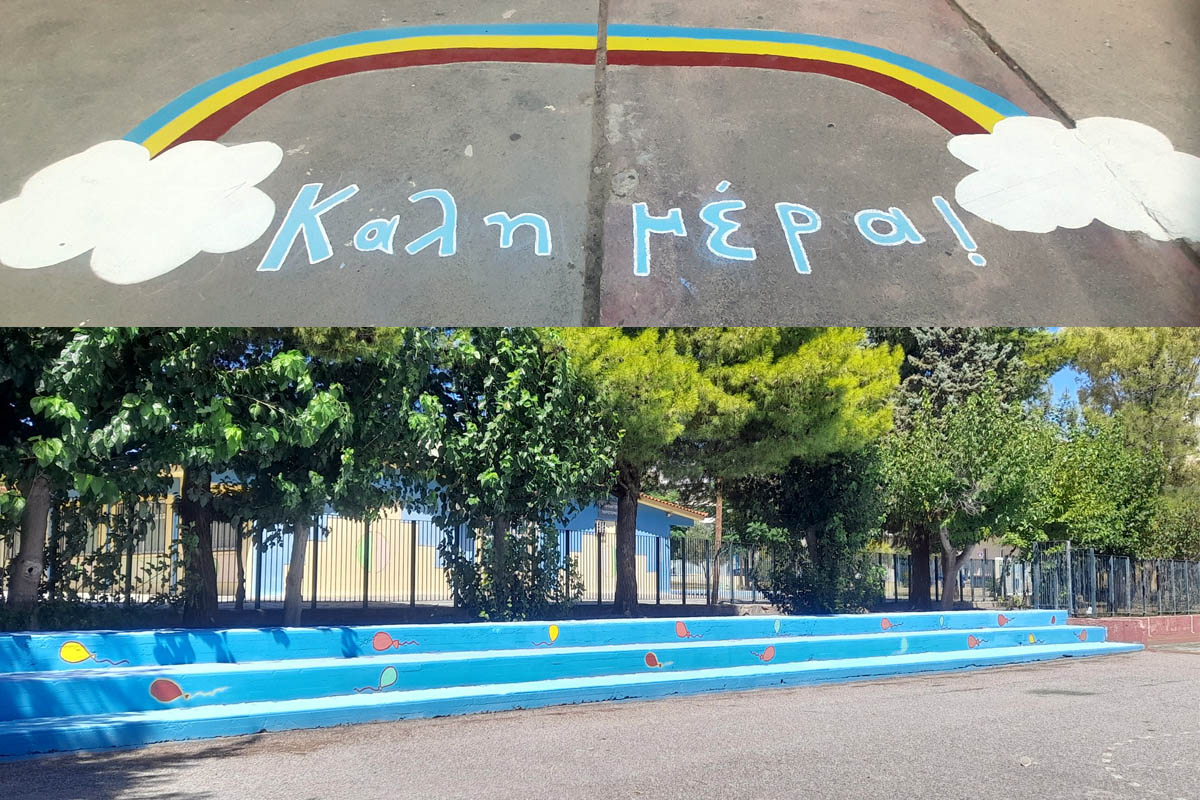 Με λίγη φαντασία και πολλή δουλειά οι γονείς φιλοτέχνησαν το άχαρο τσιμέντο με παιχνίδια για τα παιδιά ώστε η ώρα του διαλείμματος να περνά όμορφα και δημιουργικά.