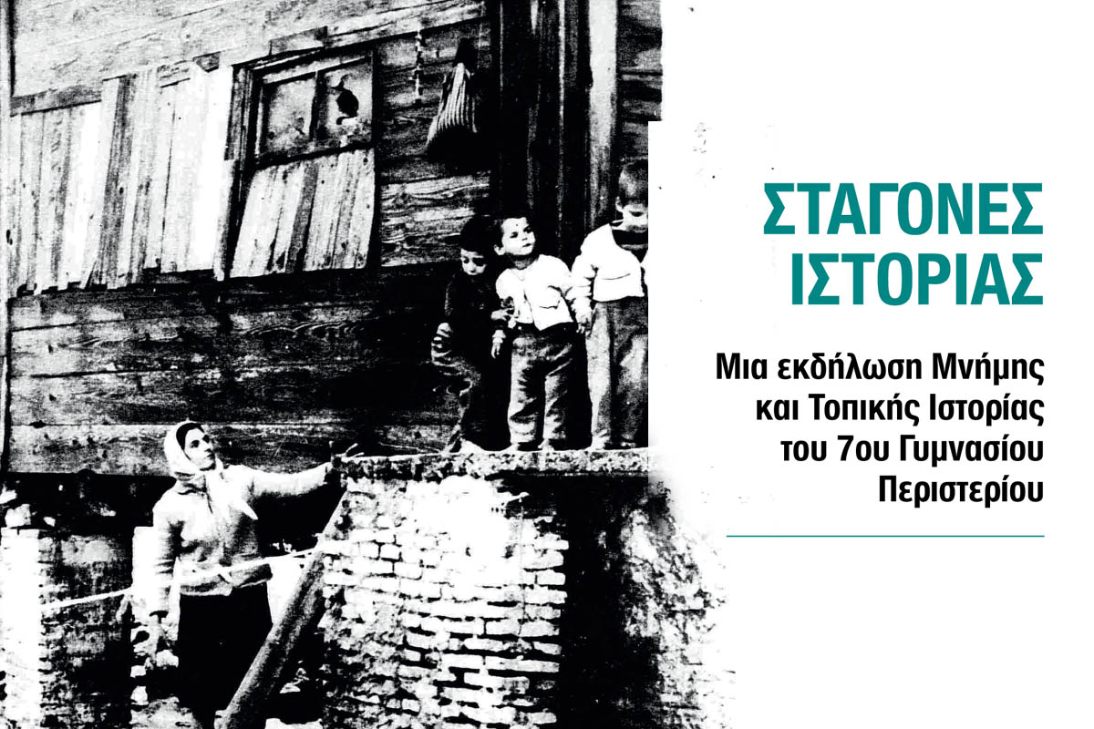 Το 7ο Γυμνάσιο Περιστερίου θα πραγματοποιήσει εκδήλωση με τίτλο «Σταγόνες Ιστορίας» τη Δευτέρα 16 Μαΐου 2022 και ώρα 19:00 στο Συνεδριακό και Πολιτιστικό Κέντρο του Δήμου Περιστερίου.