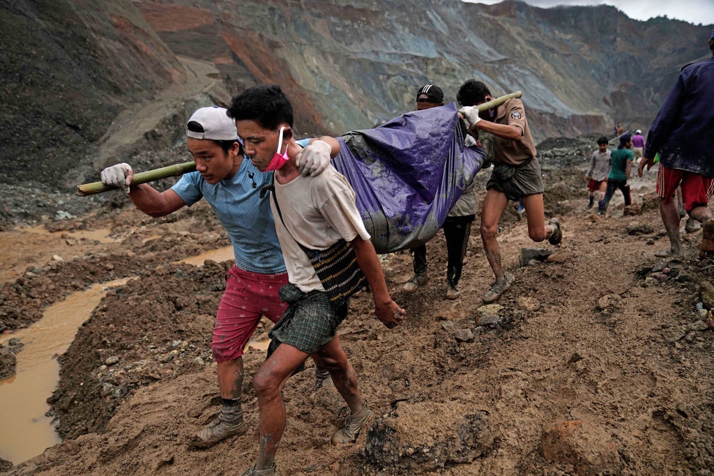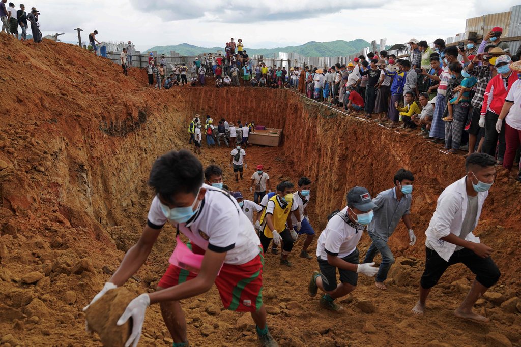 Περισσότεροι από 170 άνθρωποι, οι περισσότεροι εκ των οποίων μετανάστες που αναζητούσαν την τύχη τους στην πλούσια σε κοιτάσματα νεφρίτη περιοχή Χπακάντ της πολιτείας Καχίν, σκοτώθηκαν την Πέμπτη όταν τεράστιοι βράχοι έπεσαν σε λίμνη προκαλώντας αλλεπάλληλα κύματα λάσπης.