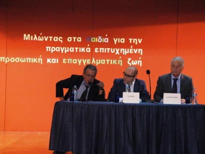 Με αντικείμενο τη σπουδαιότητα της ορθής επιλογής επαγγελματικής κατεύθυνσης για τη μετέπειτα επιτυχημένη προσωπική ζωή των μαθητών, ο Βασίλης Μπουραντάς ανέδειξε τη σημασία των κοινωνικών, συναισθηματικών και ψυχολογικών δεξιοτήτων σε όλες τις σημαντικές αποφάσεις του ατόμου και ιδιαίτερα των εφήβων. Ο κ. Βασίλης Πατσουράτης από τη μεριά του, αναλύοντας τους κανόνες και το πλαίσιο της πραγματικής οικονομίας, τόνισε τη σπουδαιότητα και τις δυνατότητες στήριξης της νεανικής επιχειρηματικότητας.