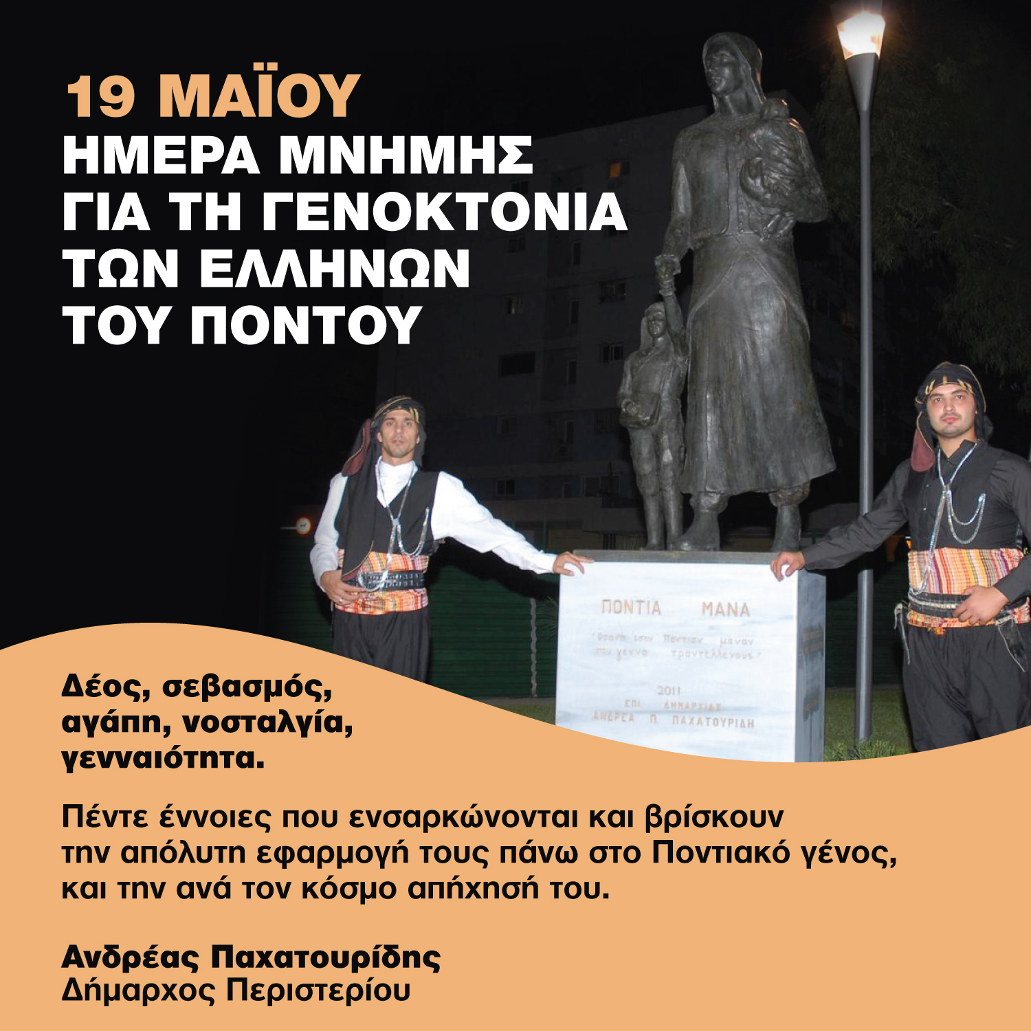 Το δικό του μήνυμα για την Γενοκτονία των Ποντίων απέστειλε ο Δήμαρχος Περιστερίου, Ανδρέας Παχατουρίδης.