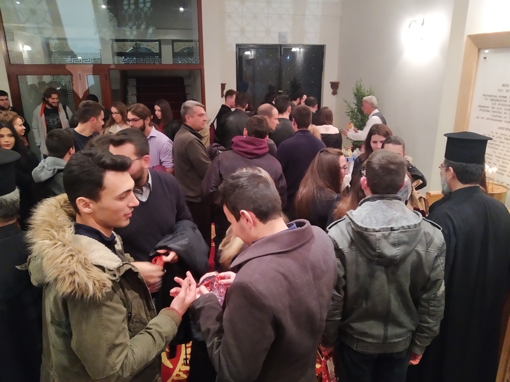 Μετά το τέλος της επιτυχούς αυτής συναντήσεως ο Σεβασμιώτατος και οι νέοι μετέβησαν στο Παρεκκλήσιο του Ιερού Χρυσοστόμου εντός του Επισκοπείου όπου τελέσθηκε το Ιερό Απόδειπνο . Σε ανάμνηση της πρώτης αυτής επικοινωνίας ο Σεβασμιώτατος τους προσέφερε από ένα αναμνηστικό δώρο και παρέθεσε κέρασμα στον εσωτερικό αύλειο χώρο του Επισκοπείου, ευχόμενος σε όλους καλά και ευλογημένα Χριστούγεννα».