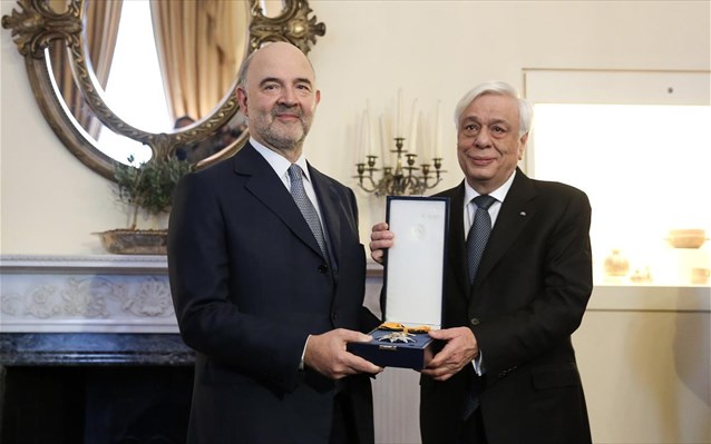 «Είναι αδιανόητο να σκεφτούμε την Ευρωπαϊκή Ένωση, και την Ευρωζώνη χωρίς να έχει στον πυρήνα και στην καρδιά της την Ελλάδα» δήλωσε ο Επίτροπος Οικονομικών Υποθέσεων Πιερ Μοσκοβισί, κατά την παρασημοφόρησή του με τον Μεγαλόσταυρο του Τάγματος του Φοίνικος από τον Πρόεδρο της Δημοκρατίας, Προκόπη Παυλόπουλο.