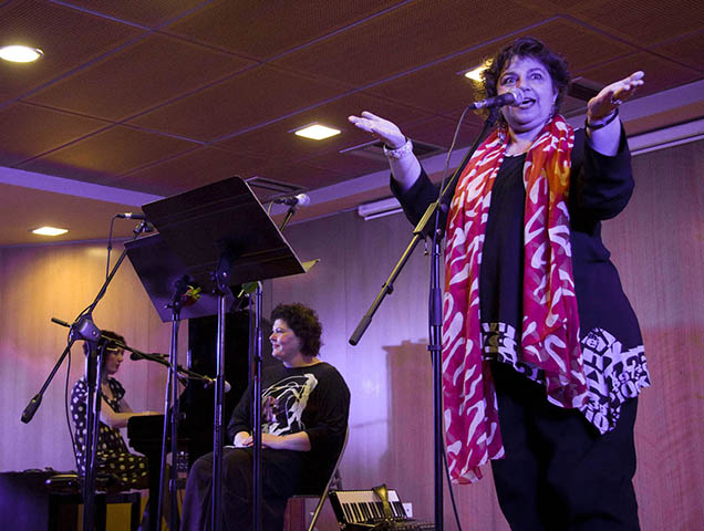 Στη διάρκεια της βραδιάς τρεις σπουδαίες ερμηνεύτριες- καθηγήτριες στο Δημοτικό Ωδείο Περιστερίου, η Μαίρη Έσπερ, η Άννα Καραγεωργιάδου και η Δέσποινα Στεφανίδου στο πιάνο απέδωσαν με μοναδικό τρόπο έντεχνα ελληνικά τραγούδια γεμάτα «γυναικείες κουβέντες».