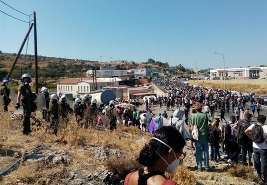 Με διαδηλώσεις χιλιάδων προσφύγων και μεταναστών στο τμήμα της εθνικής οδού Μυτιλήνης-Θερμής, όπου έχουν εγκλωβιστεί, ξεκίνησε η σημερινή τέταρτη μέρα μετά τη φωτιά που κατέκαψε τον καταυλισμό του ΚΥΤ της Μόριας.