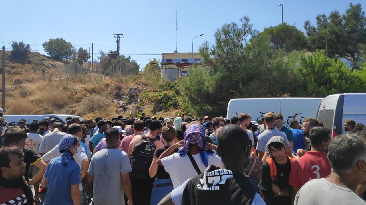 Χιλιάδες πρόσφυγες και μετανάστες κάθε ηλικίας διαδηλώνουν από νωρίς το μεσημέρι στη Λέσβο, από το πεδίο βολής του Καρά Τεπέ, μέχρι τον φραγμό που έχει στήσει η Αστυνομία, εμποδίζοντας τους να μπουν στην πόλη.