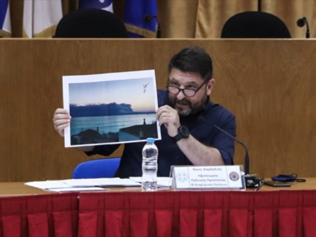 ‘Έπειτα δείχνοντας μία εικόνα της Εύβοιας με πυκνό καπνό, τόνισε ότι αυτές οι συνθήκες δεν επιτρέπουν την εναέρια προσβολή των εστιών. Όταν βρεθεί δίοδος, συνέχισε, τότε περνάνε τα ελικόπτερα. Ο κ. Χαρδαλιάς είπε ότι προχθές δεν μπορούσε να περάσει κανένα πτητικό μέσο, μέχρι το μεσημέρι οπότε και πέρασαν δύο ericsson. Μετά έκλεισε ξανά η δίοδος και έπειτα, το απόγευμα άνοιξε μια ακόμη και πέρασαν άλλα δύο ελικόπτερα.