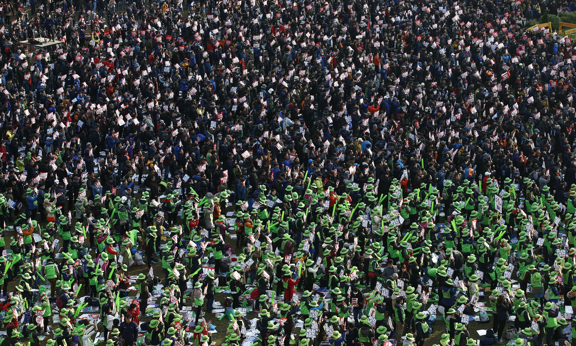 Οι οργανωτές της διαδήλωσης, τους οποίους επικαλείται το πρακτορείο Yonhap, υποστήριξαν ότι συγκεντρώθηκαν ένα εκατομμύριο άνθρωποι.