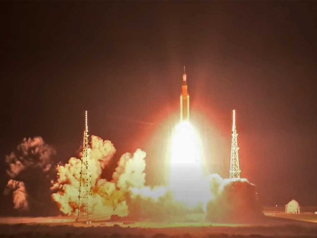 Ο πύραυλος, που φέρει την ονομασία SLS (Space Launch System), εκτοξεύθηκε στη διάρκεια της νύχτας, στη 01:47 (τοπική ώρα, 08:47 ώρα Ελλάδας) από το διαστημικό κέντρο Κένεντι.
