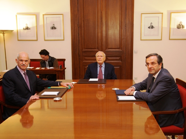 Ναυάγησε η αποψινή σύσκεψη των πολιτικών αρχηγών που μετά την αποχώρηση Καρατζαφέρη , εξελίχθηκε σε συνάντηση Παπουλια- Παπανδρέου -Σαμαρά και θα επαναληφθεί αύριο στις 10 το πρωι.